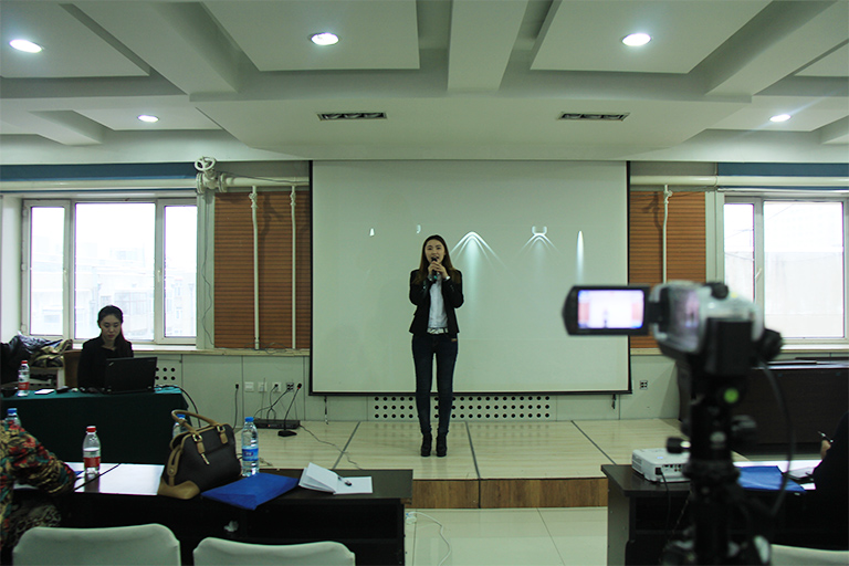 美女主持为大家介绍会议流程